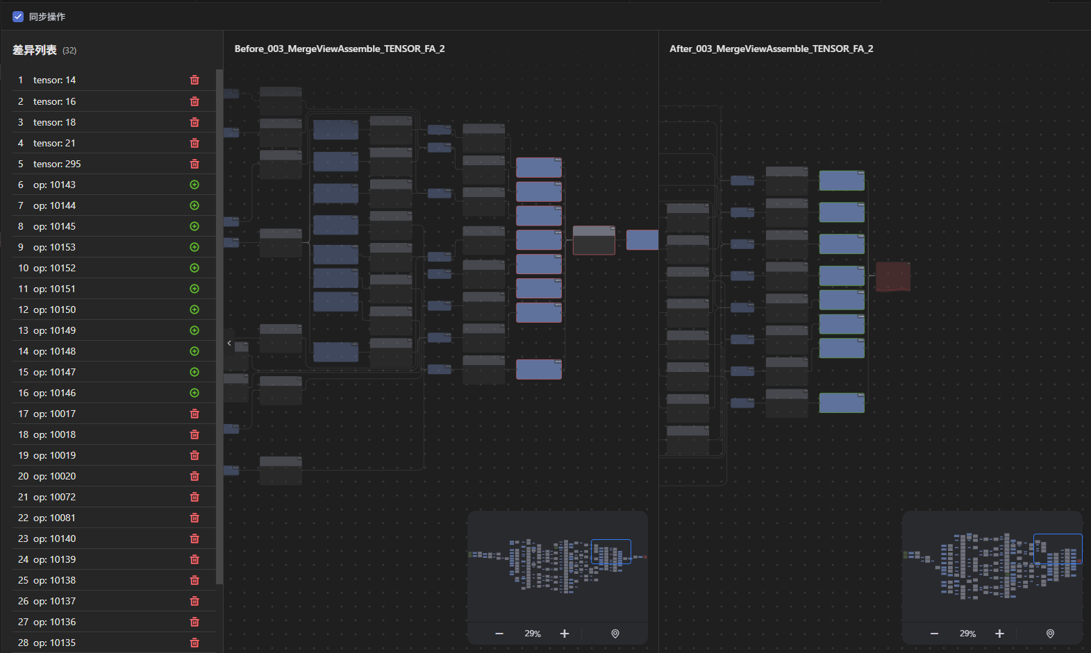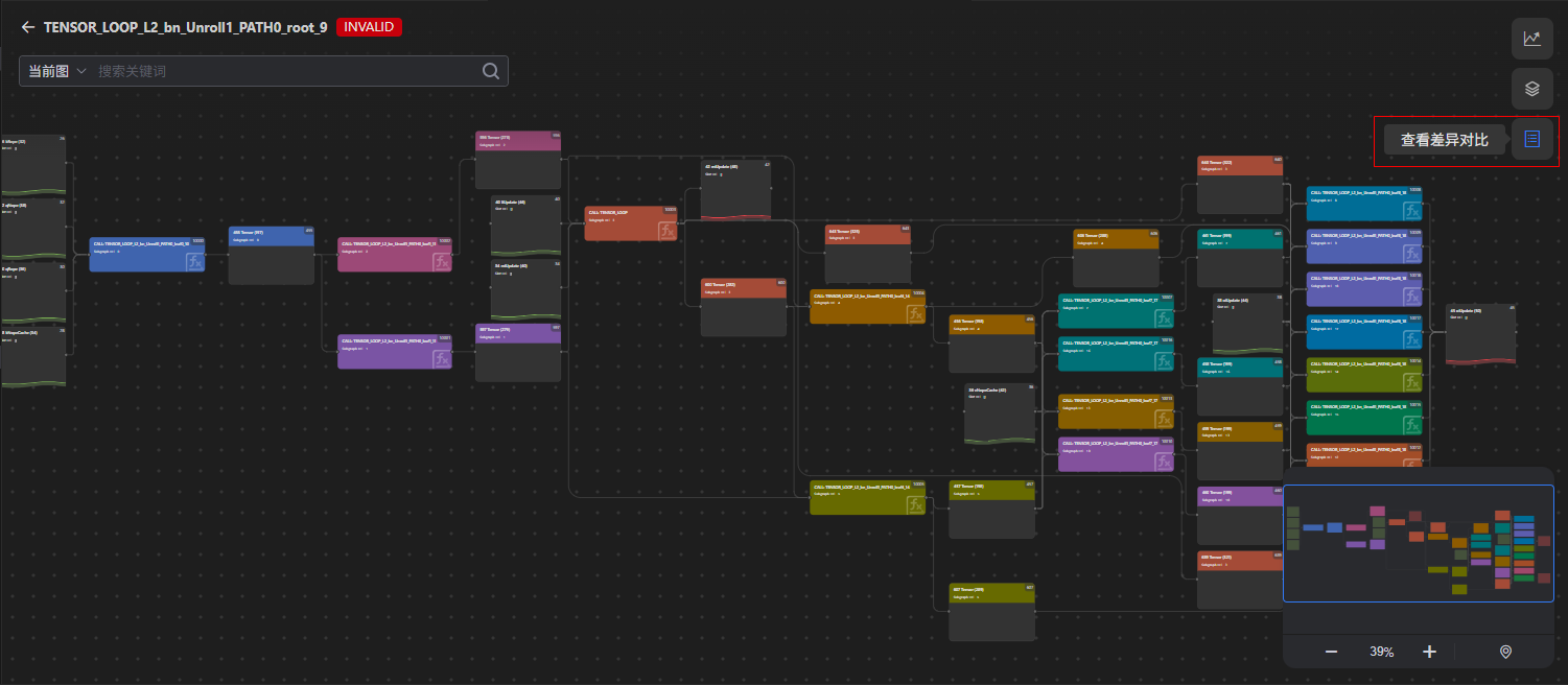 用于对比和查看两个计算图的数据差异,差异包含节点新增、删除和修改。当两个图差异超过50%且差异节点数量大于400时,不显示具体差异项。