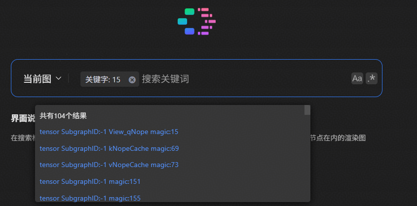 针对超大规模数据文件,由于节点数量较多,可能会导致打开速度过慢或无法打开。通过搜索特定的节点来局部渲染计算图,这样可以清晰展示特定链路,有效解决加载延迟问题并提高交互效率。目前提供两种操作方式,用户任选其一即可。