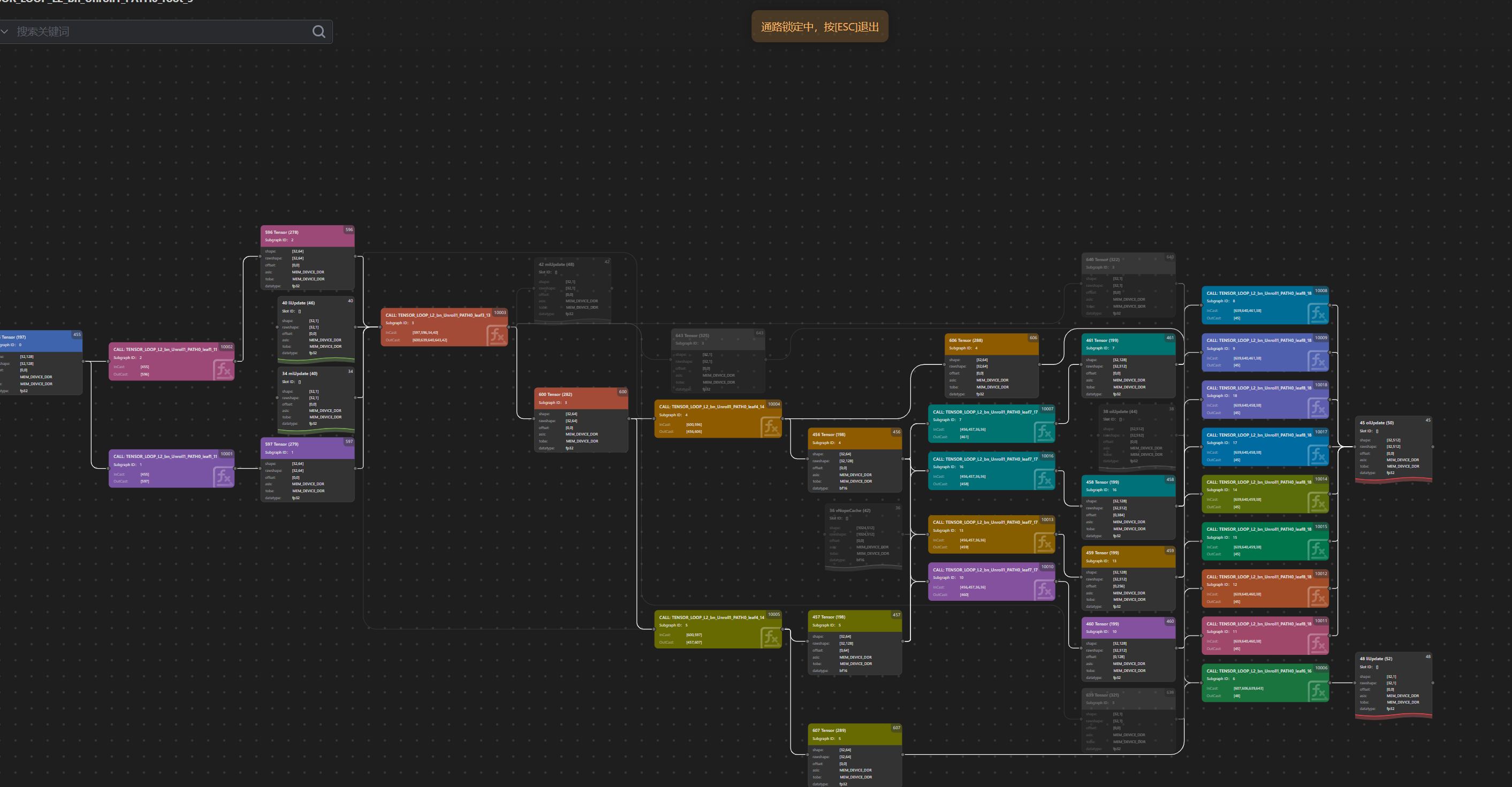 当前链路整体高亮锁定,其他节点置灰。通过快捷键(ESC)可退出锁定。