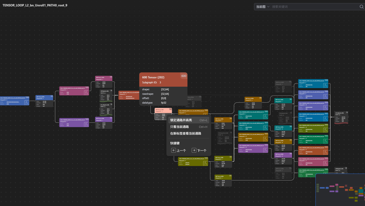 右键单击计算图中的节点,或鼠标悬浮到节点上并通过快捷键(Ctrl+H)选择“只看当前通路”。