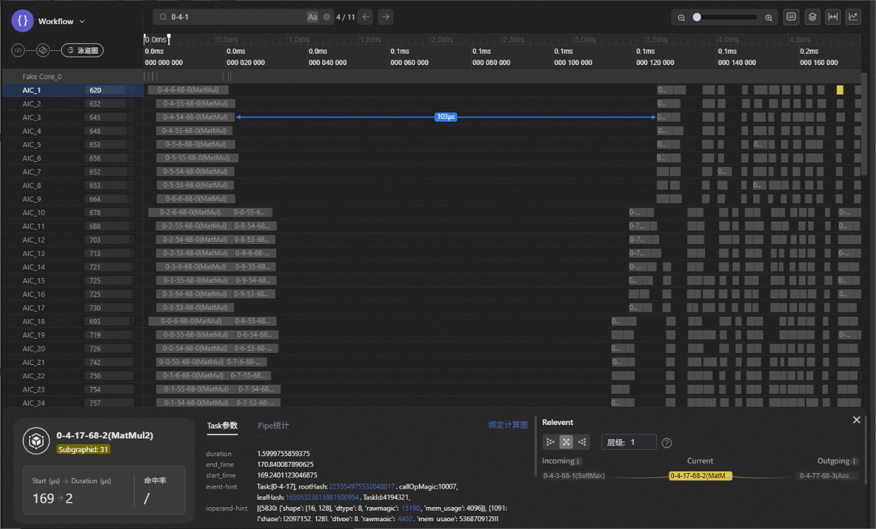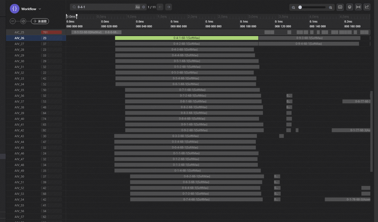 在泳道图上方的搜索框中,输入节点名称(例如:0-4-1),按下Enter键。