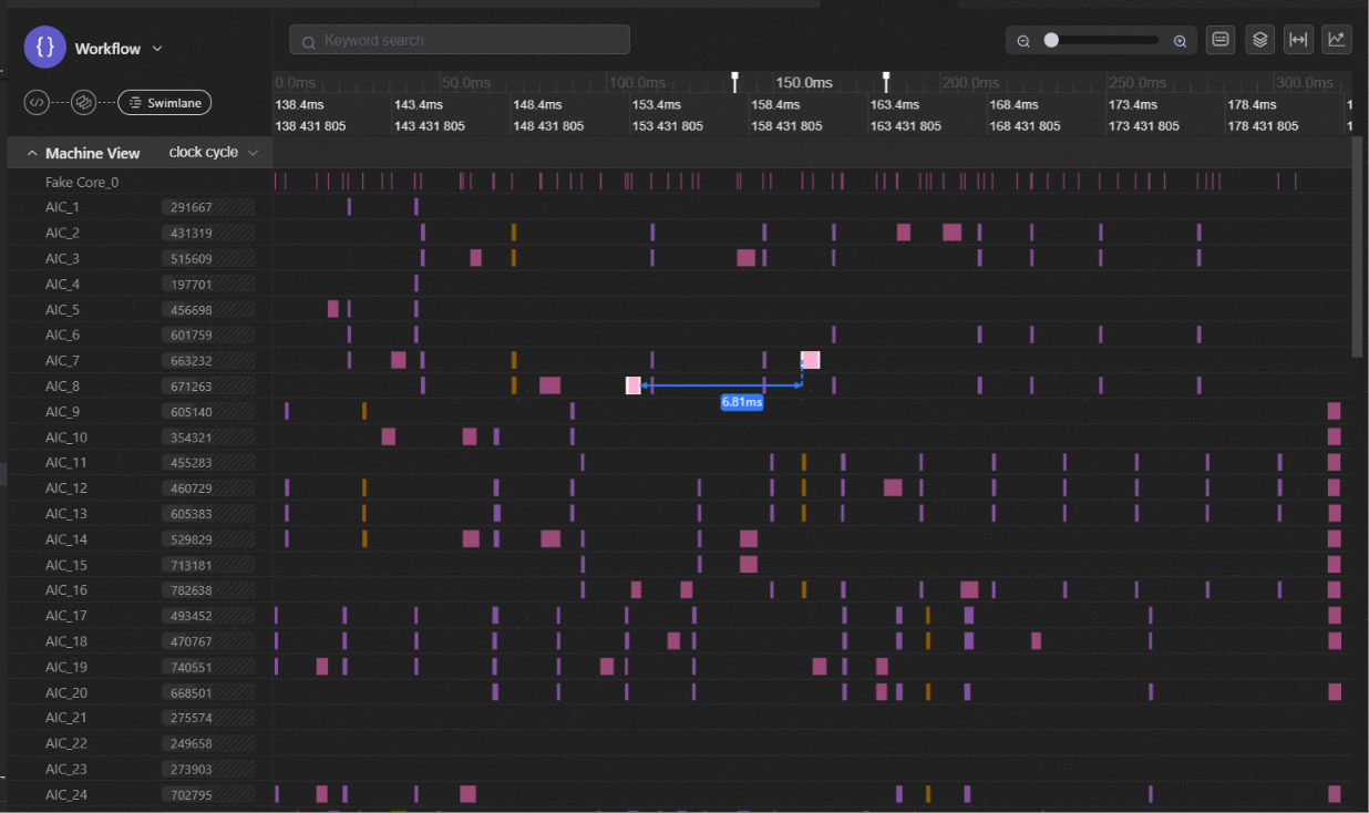 支持测量泳道图两节点间的时间间隔,当前支持自动测距和手动测距。