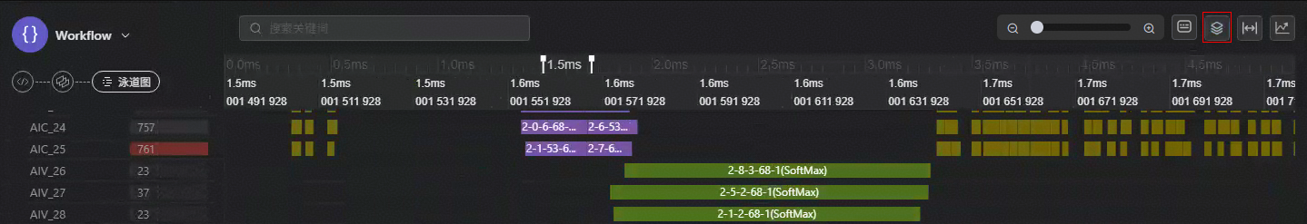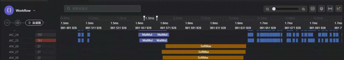 通过该选择配置泳道图节点的名称,取值包括:任务名称:展示任务名称,例如:0-10-12-0-0。语义标签:展示计算类型,例如Matmul。全部勾选则全部展示,例如:0-10-12-0-0(Matmul)。