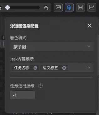 通过该配置显示泳道图节点的连线层级。例如:配置为-1表示展示该节点的全部层级,配置为1表示展示该节点的前后一层依赖关系。